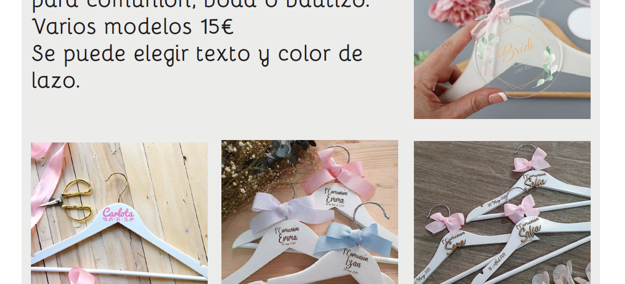 Antes de nada, comentaros que los productos que os muestro aquí son orientativos. Hay muchas más cositas disponibles, y también podemos hacer o conseguir otros artículos que hayáis visto, aunque no estén en el catálogo. Nuestro trabajo es totalmente artesanal, así que estamos encantadas de adaptarnos a lo que imaginéis.